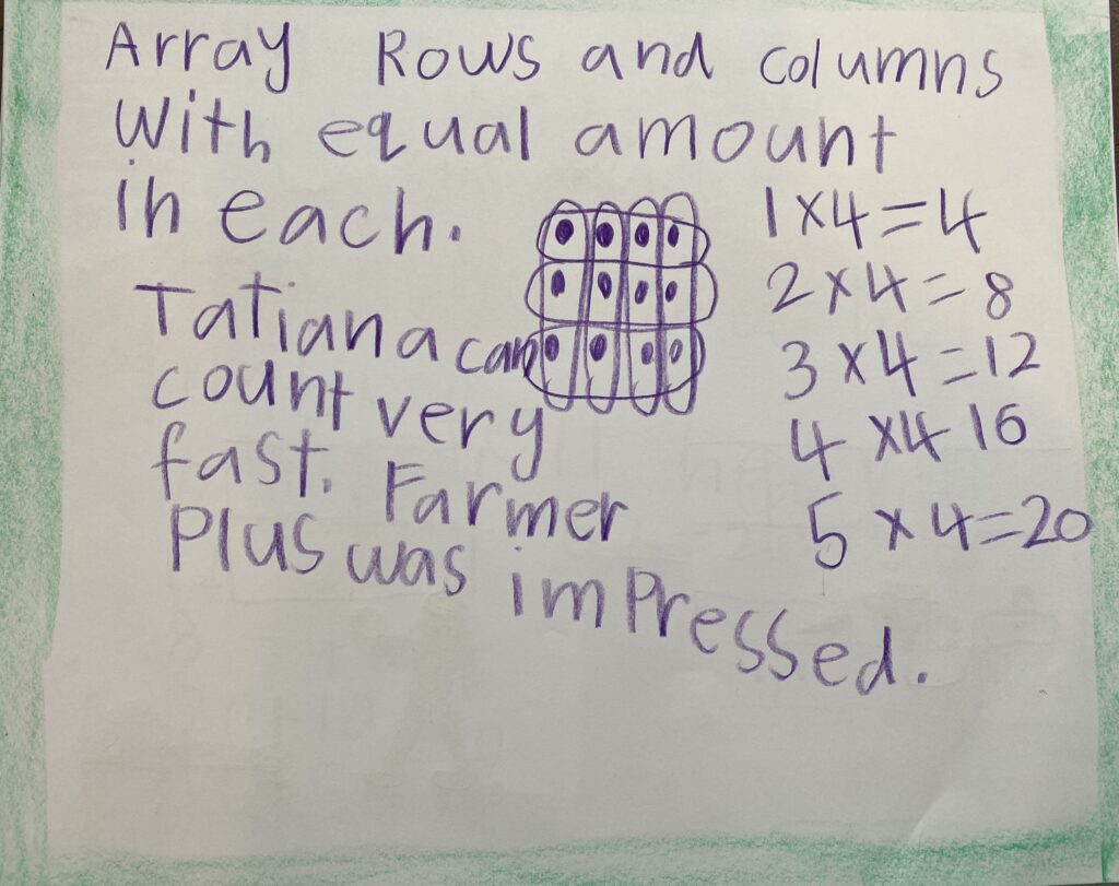 The Four Helpers brought the Mathematics processes to life in our first Main Lesson for the term. We shared dough, counted groups of crystals in arrays, added pinecones, and subtracted fruit. As this Main Lesson comes to a close, we continue to consolidate Mathematics facts and processes in our daily practice lessons.