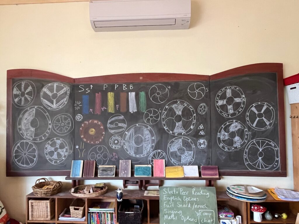 Designs are going through the pre-design process on paper, then being transferred onto the shields and swords in pencil, to be coloured with watercolour paint that continues to show the wood grain. In this way of slow, deliberate planning and thoughtfulness, the students are feeling deeply into a sense of respect and reverence for the task. They are also processing that they have choices, but within a framework, and there is respect for others culture, tradition and history in our actions. This is an important thing to uphold, in a fast, self-centred and highly disposable consumer society, and something that Steiner education continues to see as important skills for the Class 3/4 child.