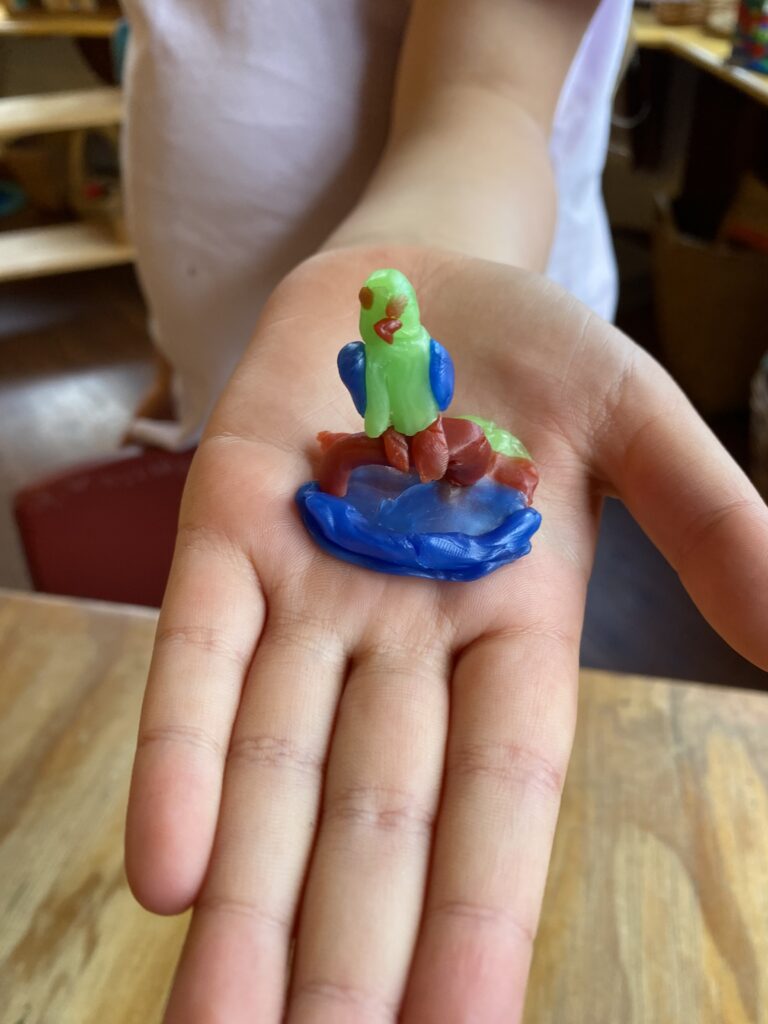 Our beautiful beeswax modelling was inspired by our story this week called “The Butterfly and the Rose”. You can see that the children’s skills and abilities to shape and craft the beeswax has really grown and blossomed over the year. The children are now able to make a range of detailed and refined sculptured images.