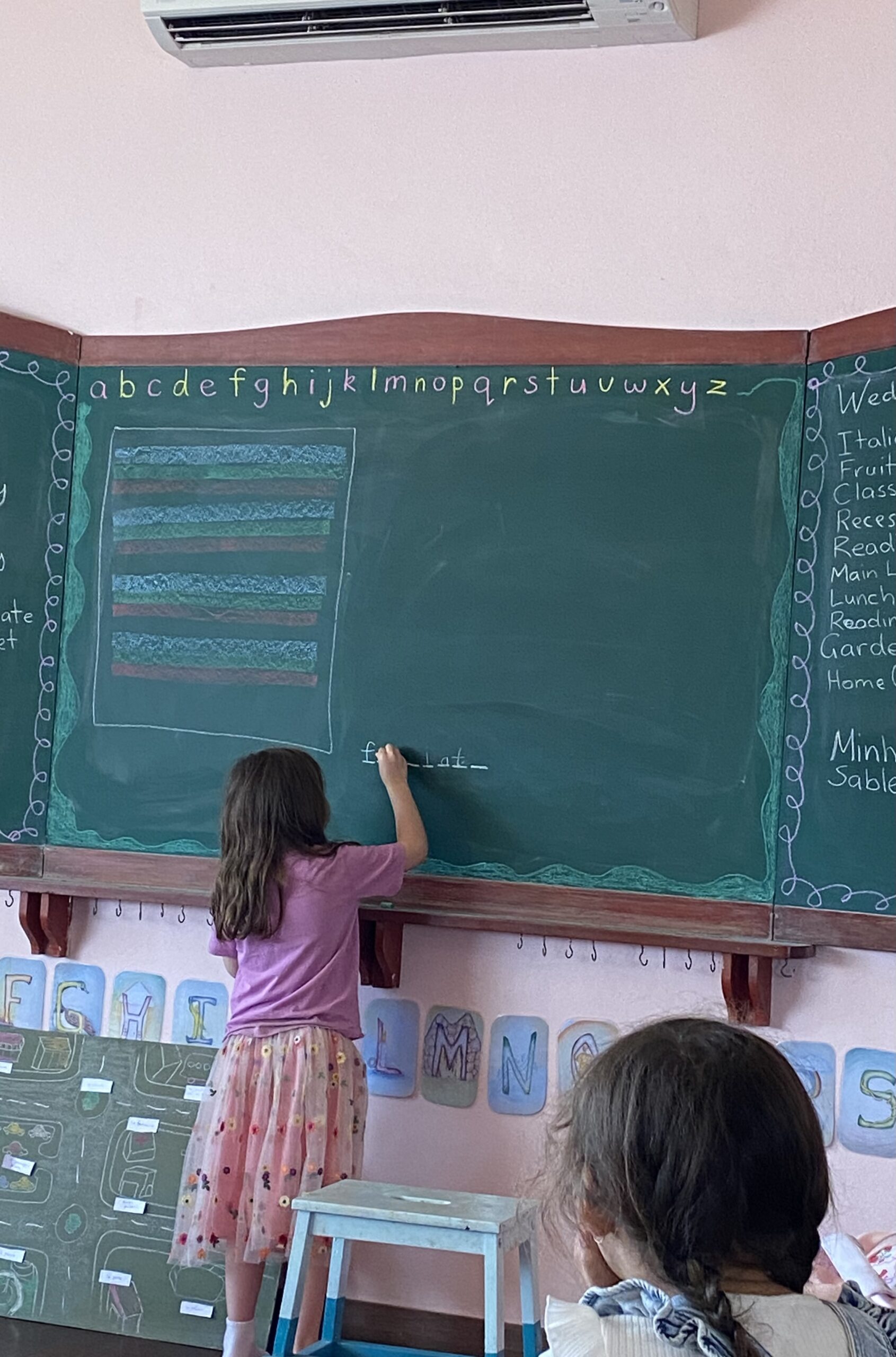 Afternoons included frozen oranges enjoyed on the carpet, a simple pleasure in the warmer days. We are always grateful for fruit contributions such as apples, oranges, watermelon or grapes to freeze and share. These small offerings are received with great delight whenever you happen to have extra.