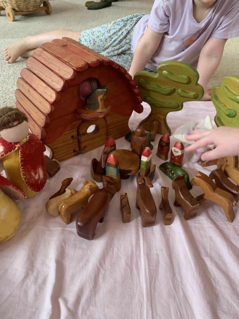 As adults, we understand the characters in these stories to be metaphors for qualities in life rather than literal representations of people. The child hears the stories in a different way than an adult – they identify with every character in the story, with their virtues or their weaknesses, and in listening to the story enter into a magical realm of pure imagination which is the heart of childhood.
