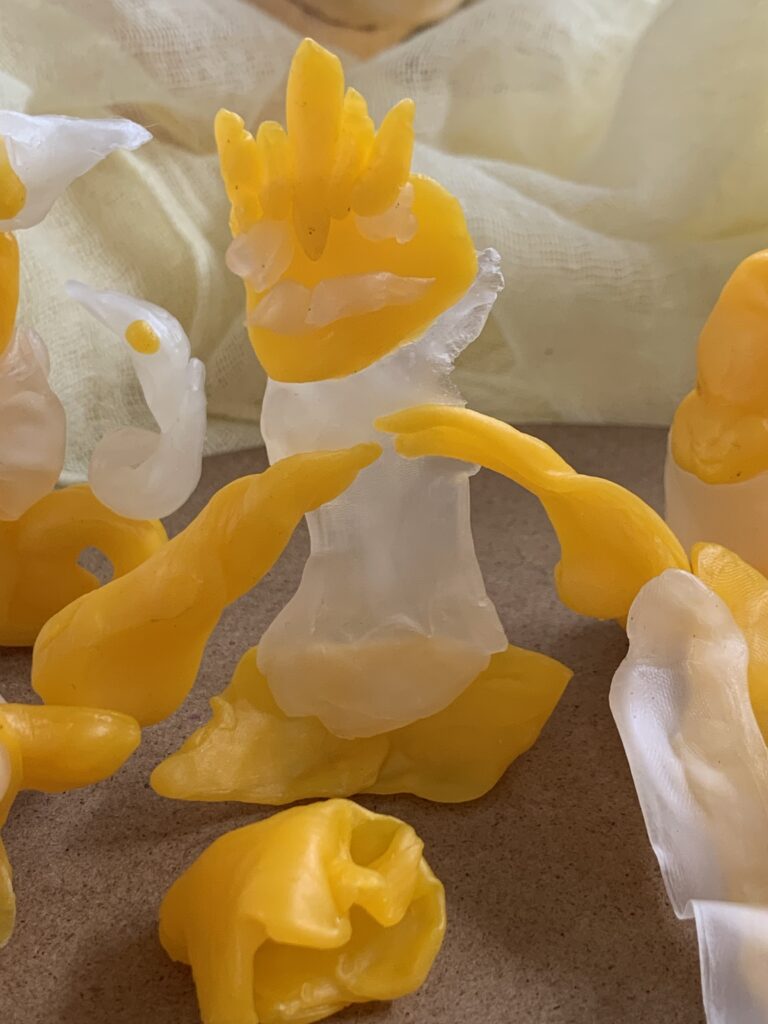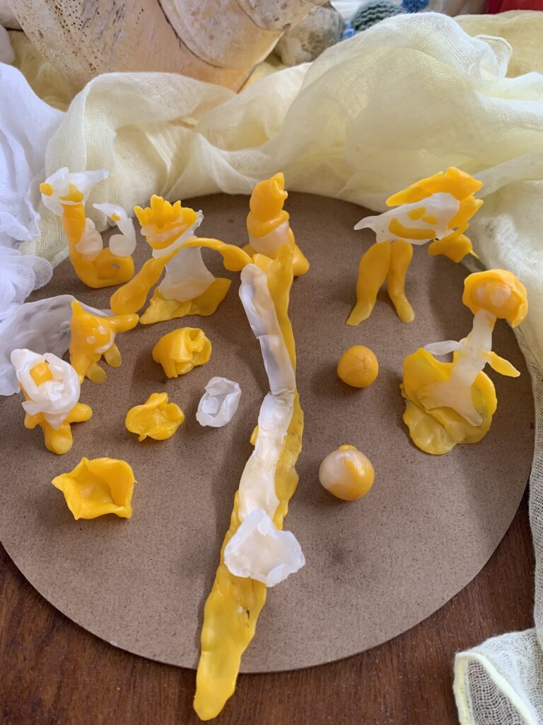 This week’s story was called “The Gift of Shells”, about an old gnome named Sandy, Sandy the Beach Gnome. The children made some fabulous beeswax images in response to the story.