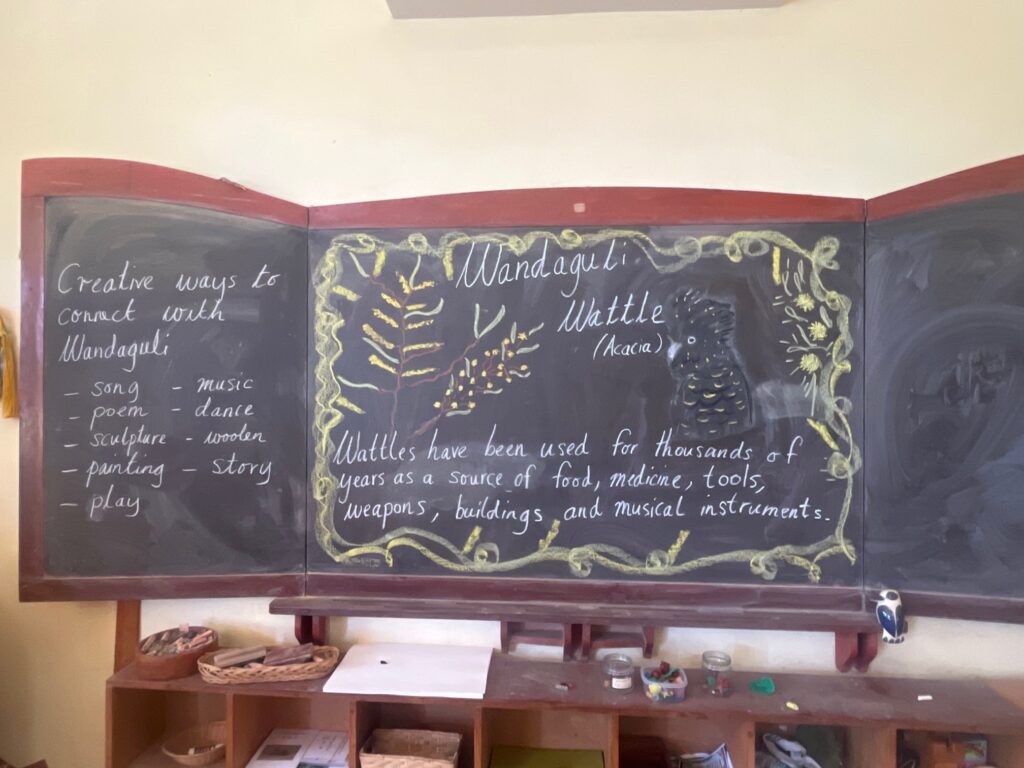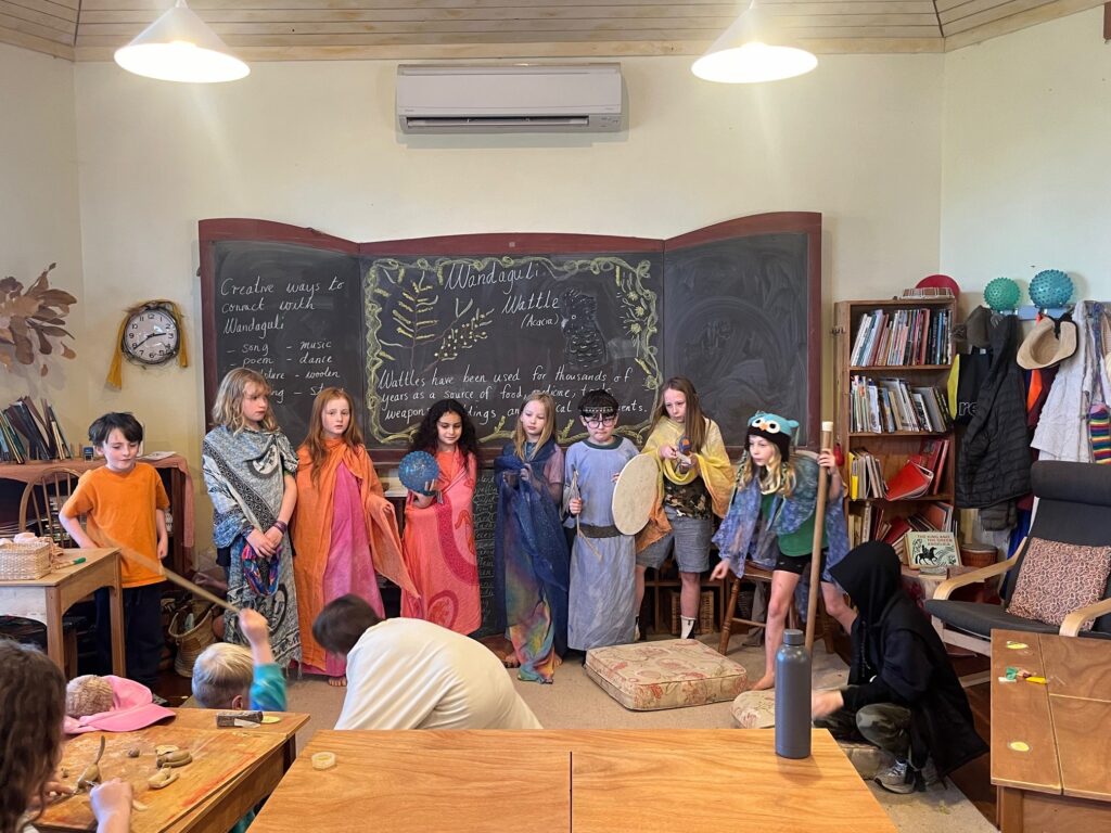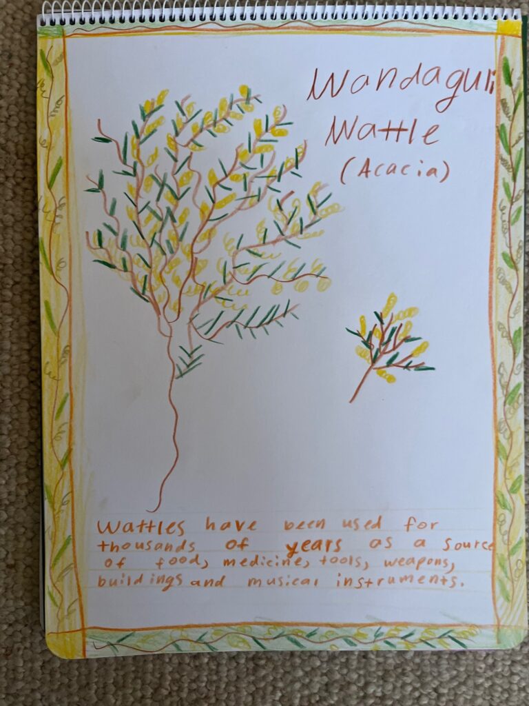 We’ve also been having our own celebration of wattle. A mini–Wattle Festival! Children have learnt about traditional uses of wattle and chosen multiple creative ways to express a connection to wattle. We have had wattle-inspired paintings, drawings, beeswax sculptures, woollen friendship bracelets, dances and plays. Delightful.
