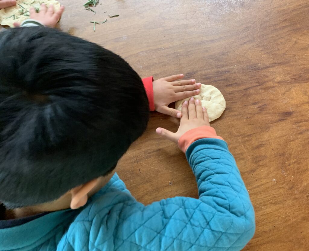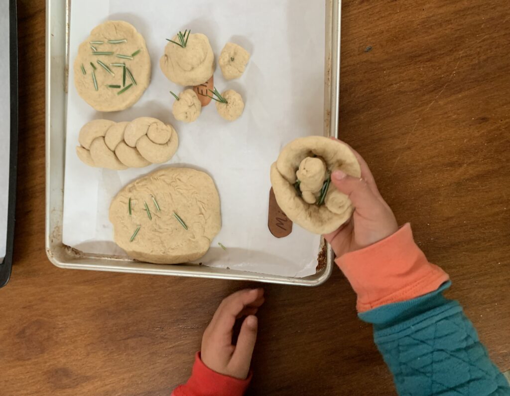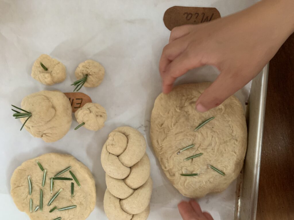 In maths we have begun a fractions Main Lesson, imagining we were children at a marketplace in ancient Egypt about to eat a whole loaf of Lebanese bread … when footsteps were heard on the path and a surprise friend to share with! We cut the bread in half and were ready again to eat when … two more sets of footsteps arrived. And so, we share into quarters. On and on eights, sixteenths until we were sharing the bread in 32 slices! No wonder the Egyptians discovered fractions!